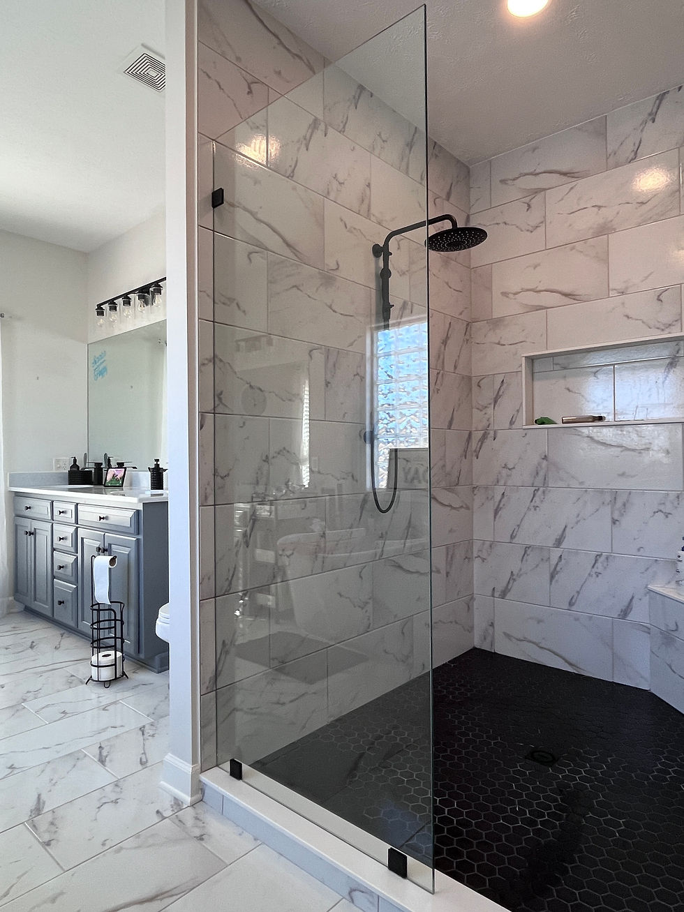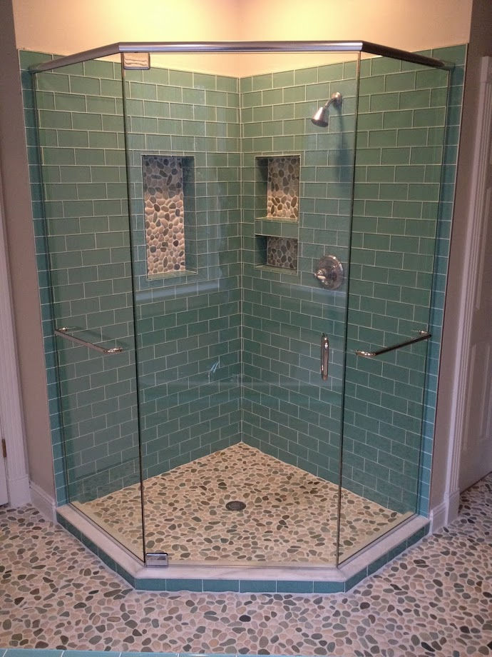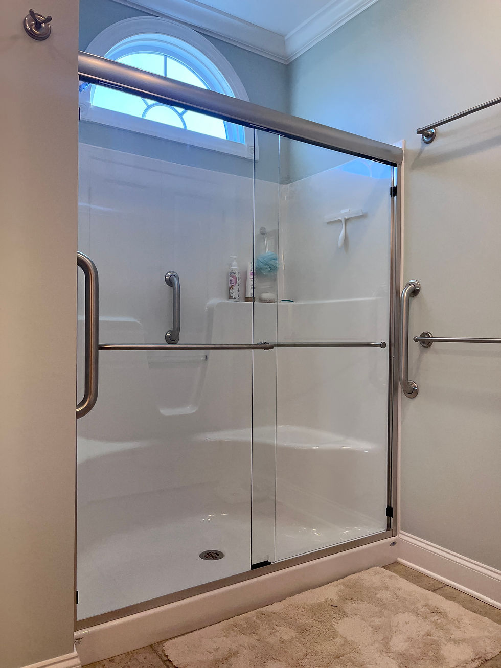 3/8" & 1/2" thick tempered glass panels, including multi-panel configurations, for modern, frameless shower designs.